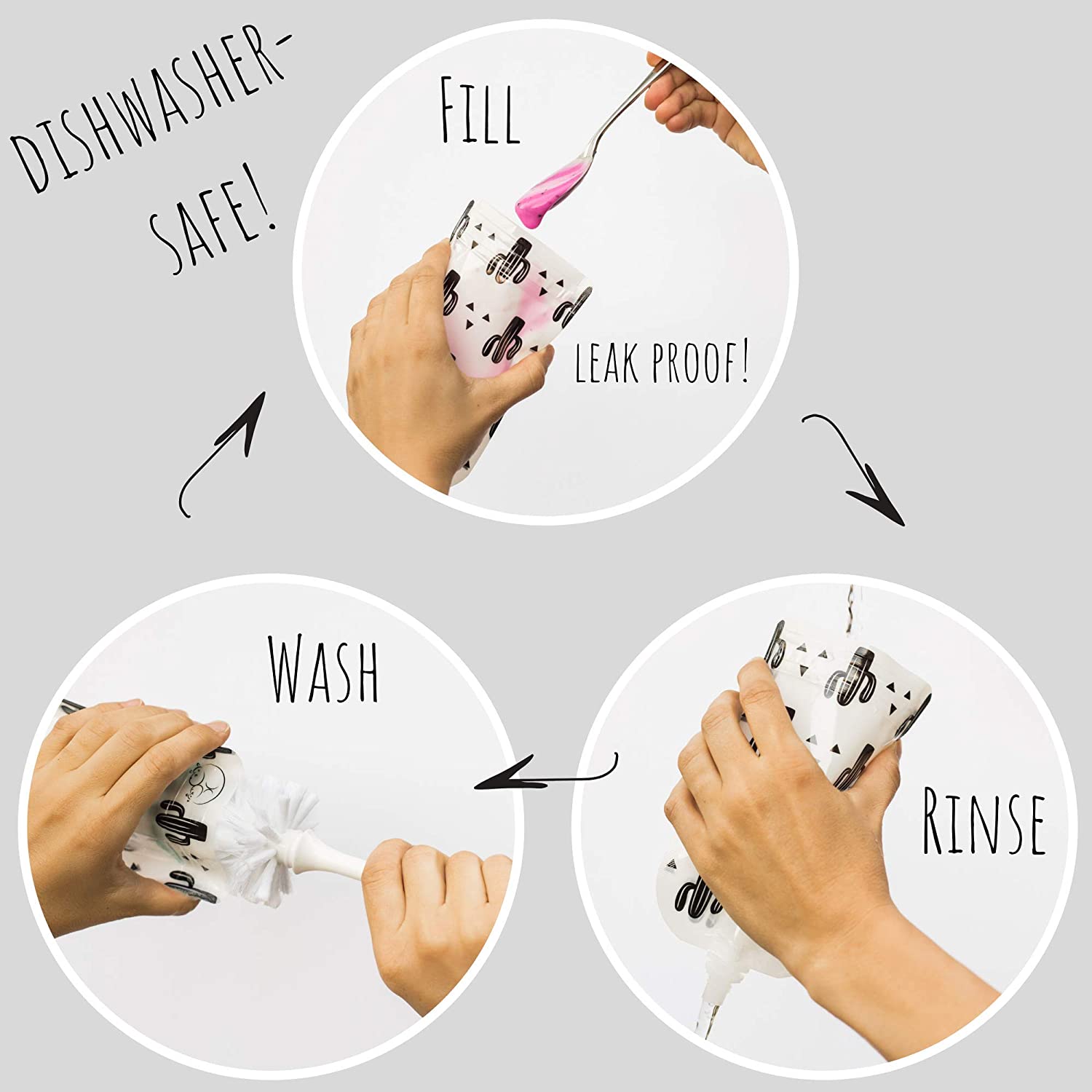 SAVE COST & REDUCE WASTE: Unlike disposable store-bought pouches, our pouches are reusable and recyclable. You can stop wasting money on overpriced purees and fill your pouches with your own creations or bulk applesauces, yogurts, etc.
