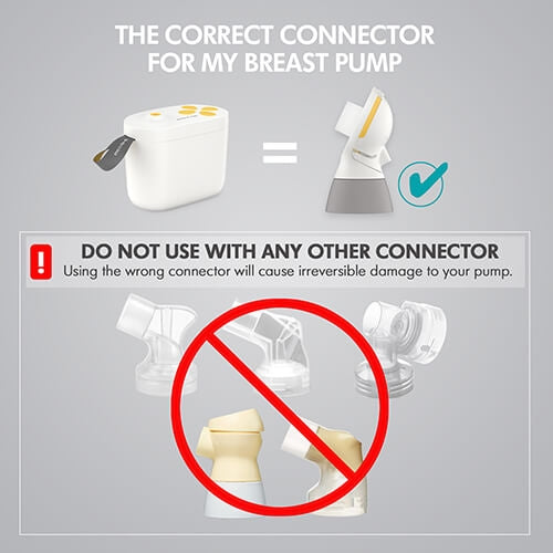 Only compatible with PersonalFit Flex™ Connectors, do not use PersonalFit™ Connectors as use of other connectors can cause irreversible damage to your breast pump.
